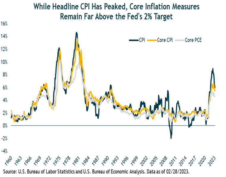 On the inflation front, while inflation likely peaked last year and has come down, it remains too high relative to the Fed’s 2% long-term target. February’s year-over-year core CPI inflation rate was 5.5%, while core CPE inflation – the Fed’s preferred measure – clocked in at 4.6%.