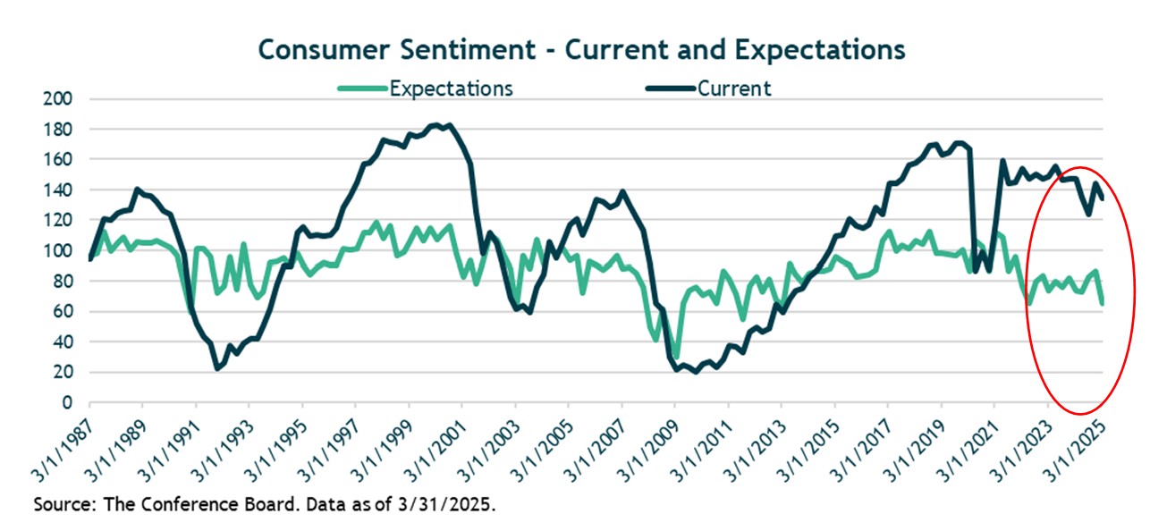 The consistently ever-changing tariff landscape is clearly weighing on consumer sentiment adding to overall uncertainty. The rapidly changing policies make it difficult to keep up in real-time, and frequent reversals can make any analysis moot within hours. Uncertainty seems to be a tactical tool in Trump’s governance toolkit, as if to give him political leverage to achieve his desired outcome. Without details, the long-term market impacts are unclear, and the broader investment implications will take time to play out.